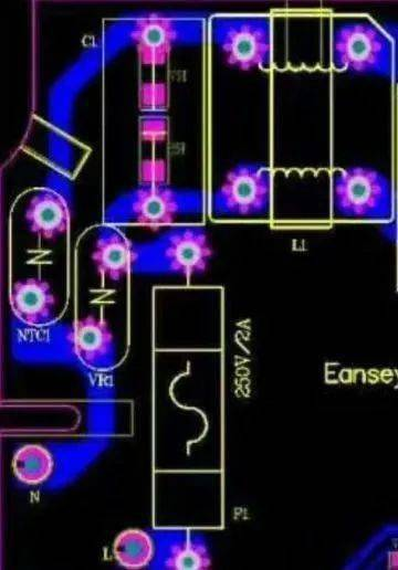留意這兒穩妥絲之后,接壓敏電阻VR1再接x2電容的走線,完全是繞了一個彎這是為什么?