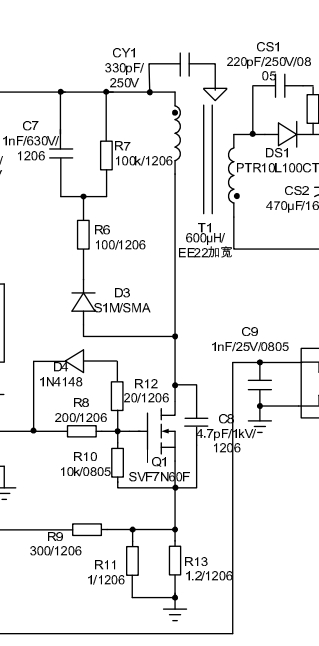 這是控制器用來直接連接高壓的采樣分壓電阻,假如距離不符合要求,很有或許就會耐壓不行擊穿。貼片電阻器也是有耐壓的,不過耐壓不行就要加大封裝。